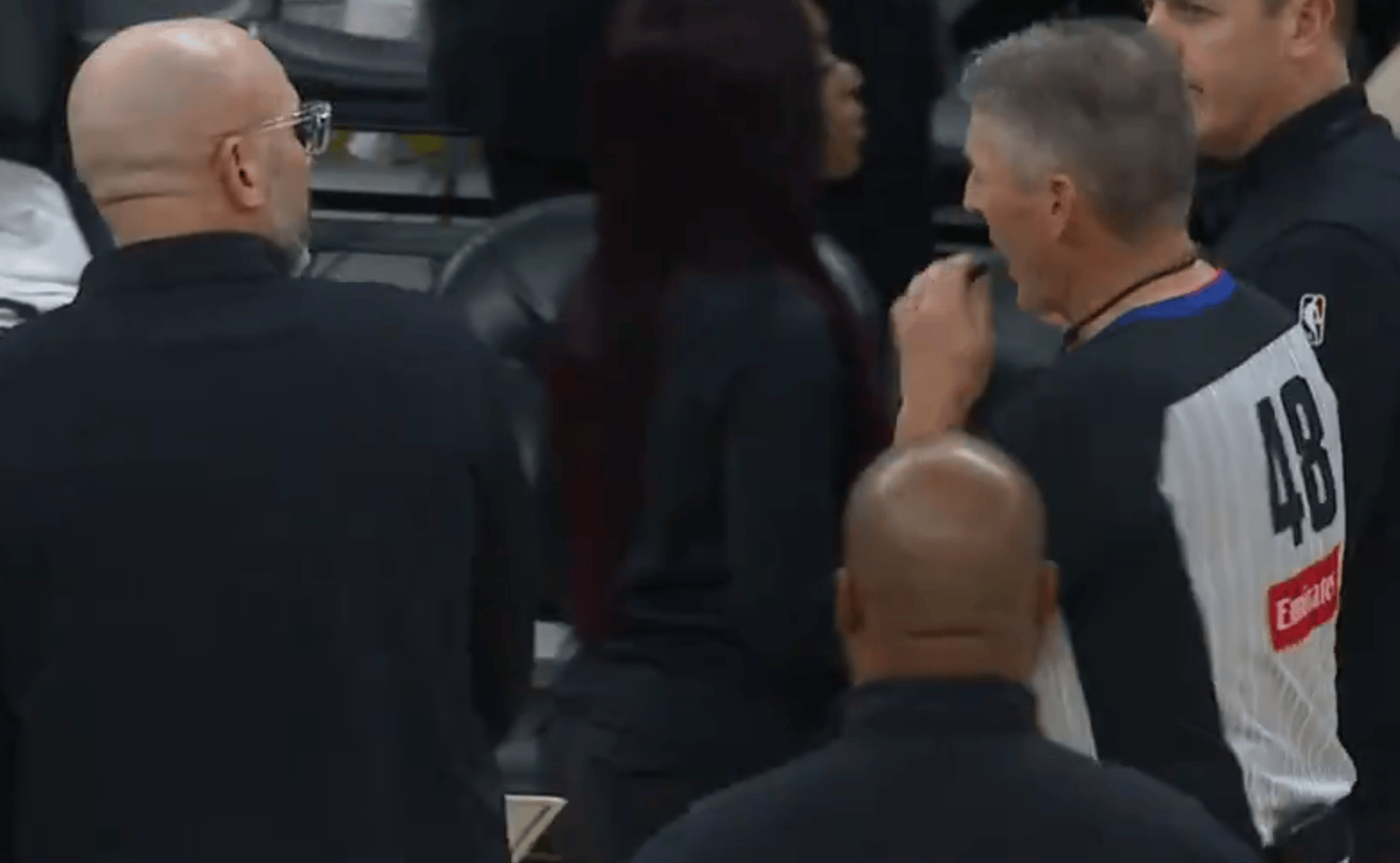 杨瀚森逼抢亚当斯相撞倒地,被亚当斯压到头部随后被换下场