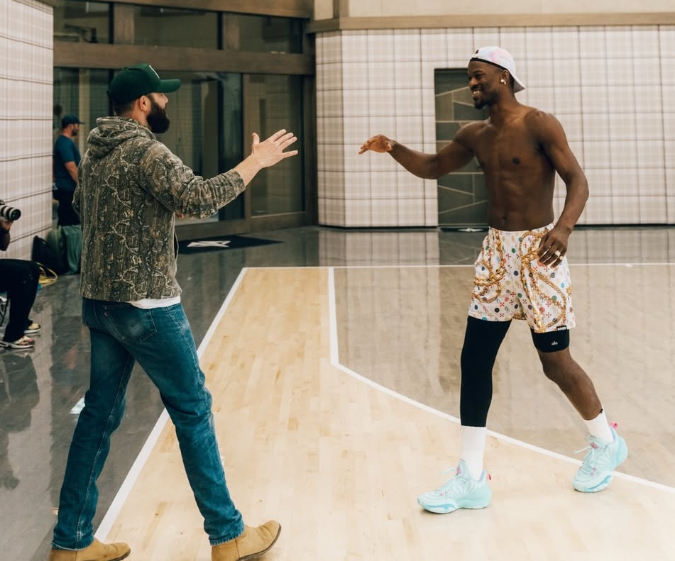 湖记:里夫斯在球队训练后,已换上球鞋进行罚球练习