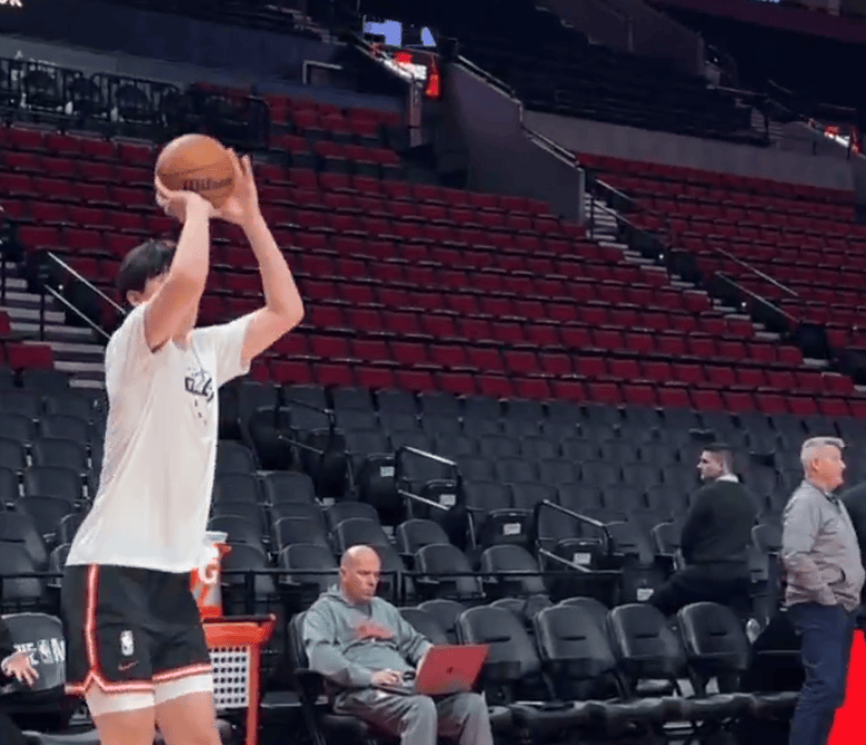 开拓者官方晒出赛前热身视频:杨瀚森空切扣篮、底角三分入镜