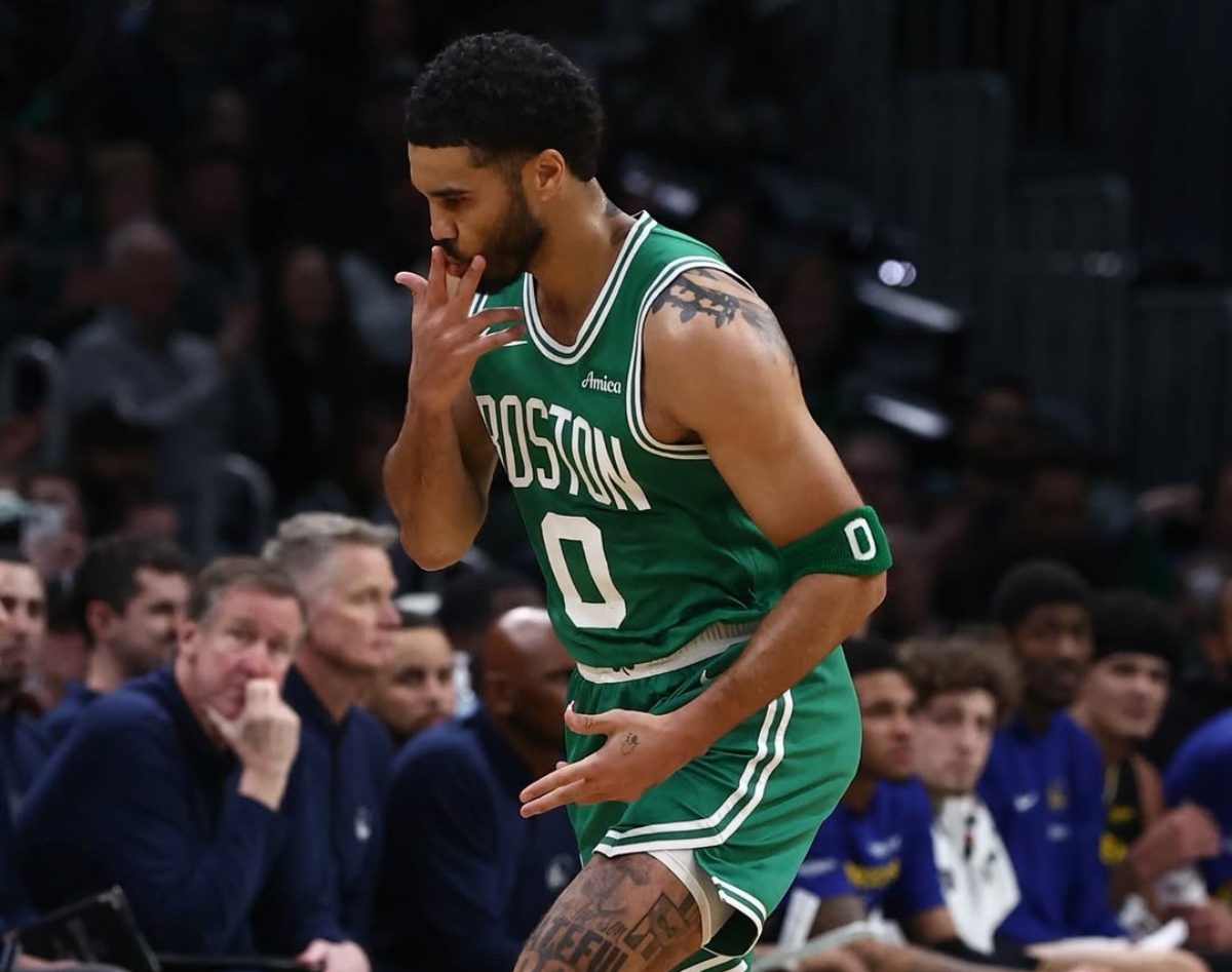 塔图姆近5战场均出战33.9分钟,得到25.8分11.8板8助1.6断