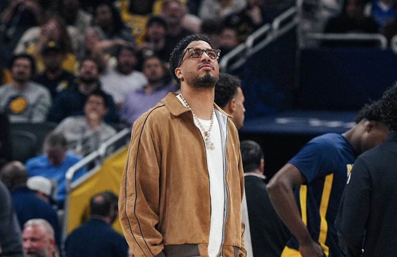 步行者官方:哈利伯顿回归球队并坐在替补席上,真的太棒了