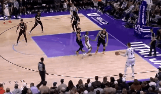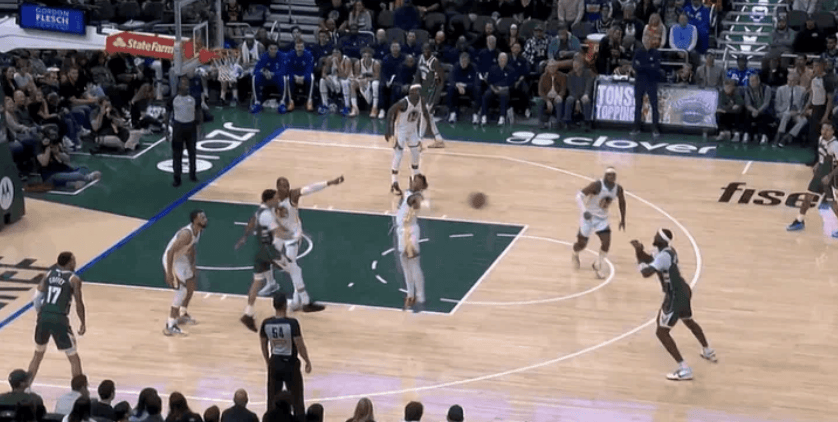 库里外线背后运球出界失误,勇士落后雄鹿9分