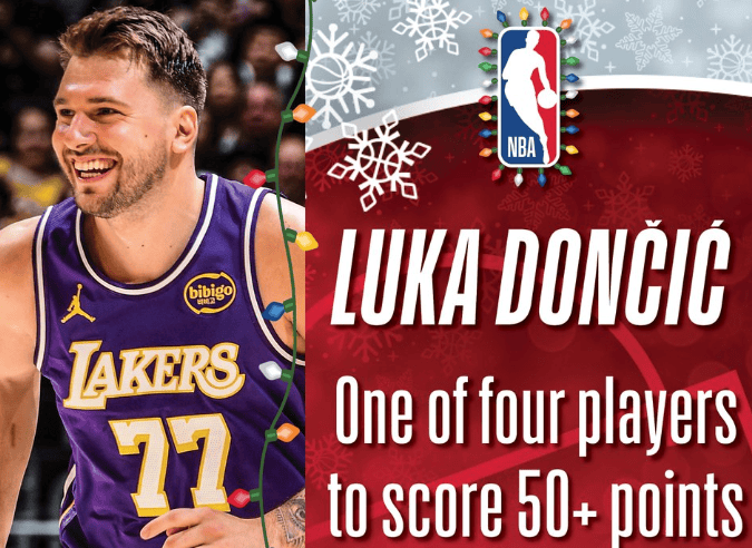 官方:东契奇是历史上仅有的四位圣诞大战砍下50+的球员之一