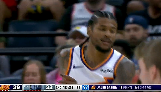 杰伦-格林次节上来里突外投连得9分,目前11中7得到17分