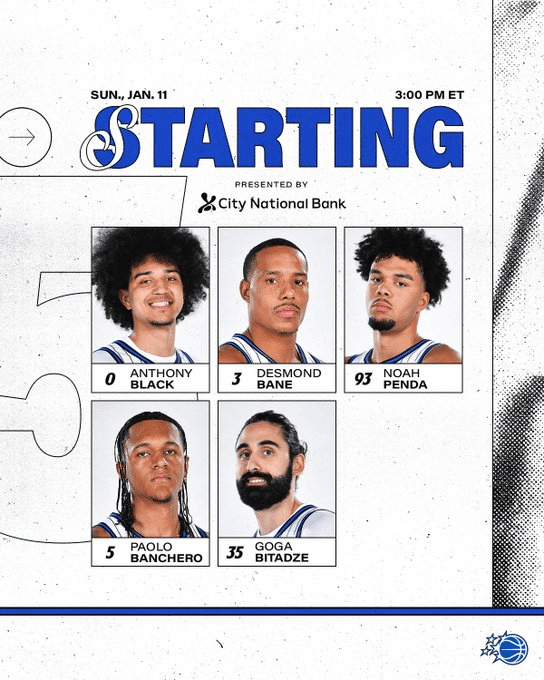 魔术首发:布莱克、比塔泽、贝恩、庞达、班凯罗