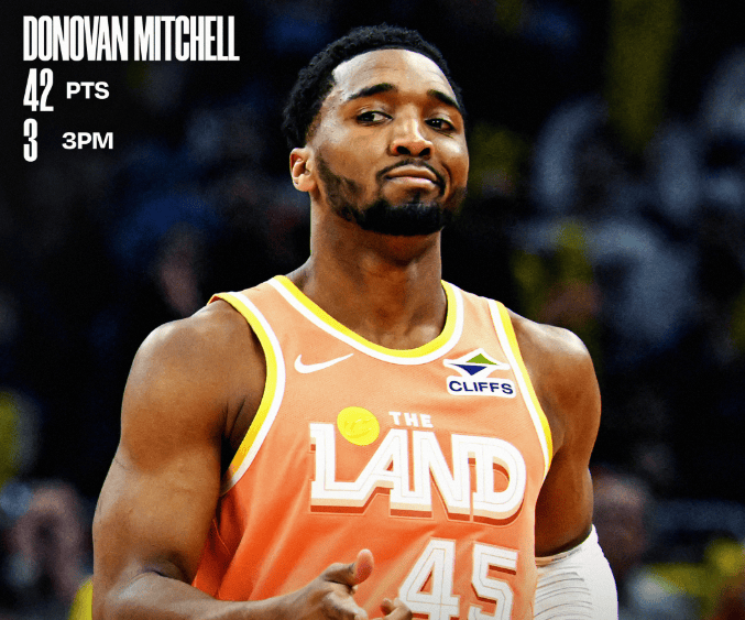 虎扑多诺万-米切尔第3节7投5中,砍下13分1篮板1助攻