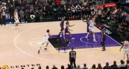 蒙克压哨命中首节第3记三分,首节战罢国王领先快船10分