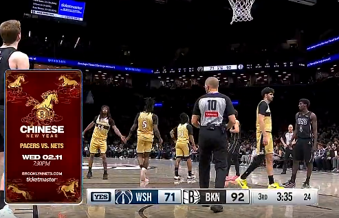 虎扑 59回复转播画面给出赛事信息,为篮网主场中国春节主题的比赛预热