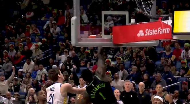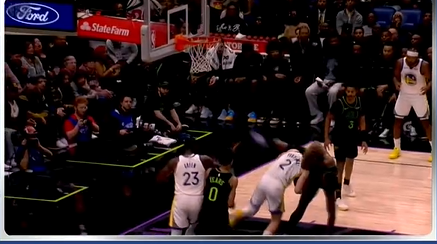 生猛!蔡恩突破单臂隔扣波斯特,鹈鹕开局14-8打停勇士