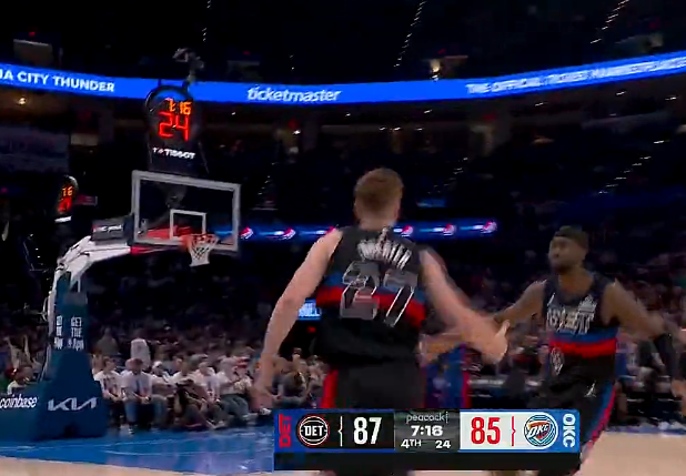霍姆格伦关键时刻也出现6犯离场,活塞还剩30秒再次追平雷霆