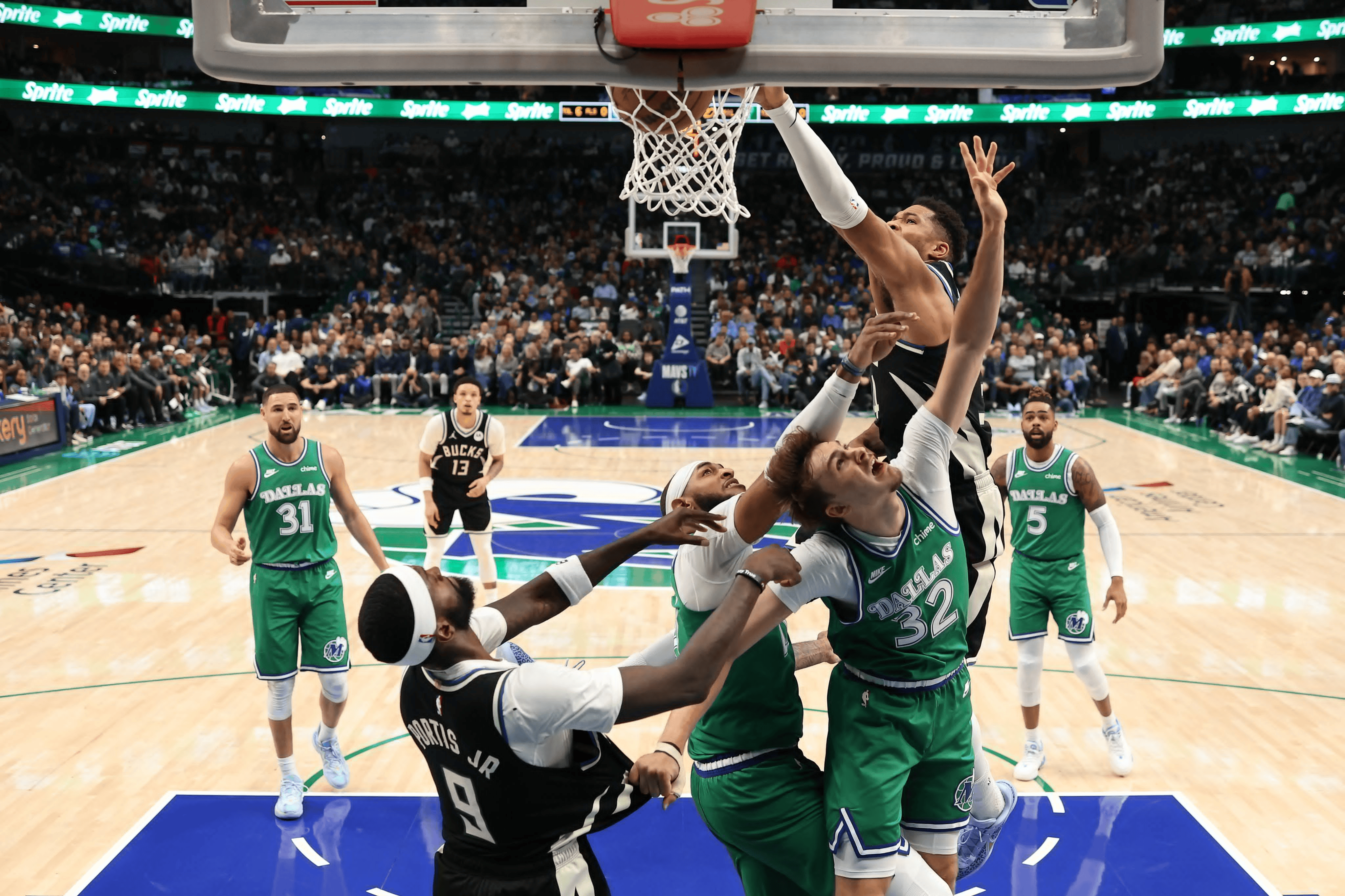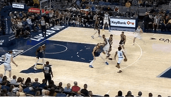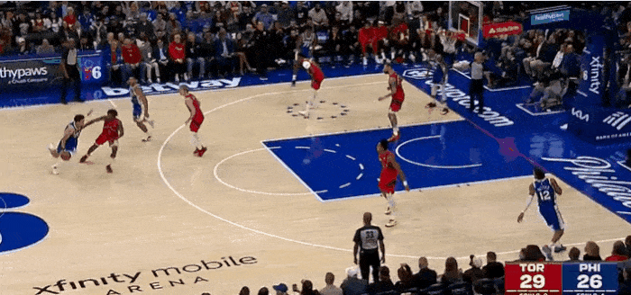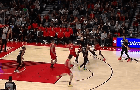 巴恩斯体前变向突破,人缝当中钻过双手暴扣得分