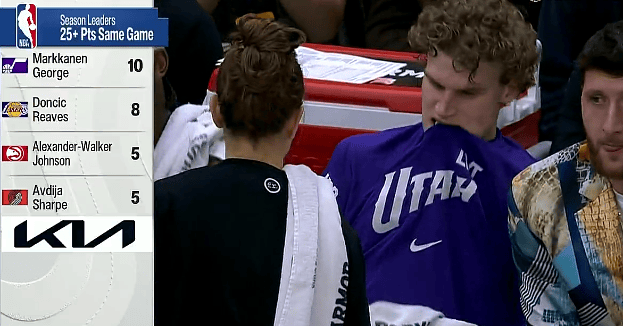 克林根&罗威全场合计14分21板6助2断3帽,杨瀚森未出场