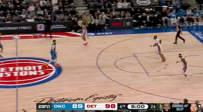 杰林三分再中得到22分10篮板,雷霆持续追分到个位数分差