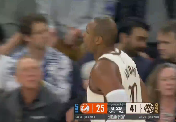 霍福德底角三分也投进,勇士第二节41-25领先16分打停快船