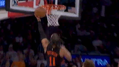 恩比德反击双手暴扣得手,命中今年季后赛的首个进球