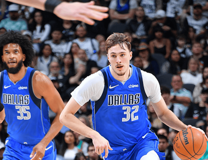 虎扑梅尔顿垃圾时间出手三分并投进,随后东契奇比出倒赞手势
