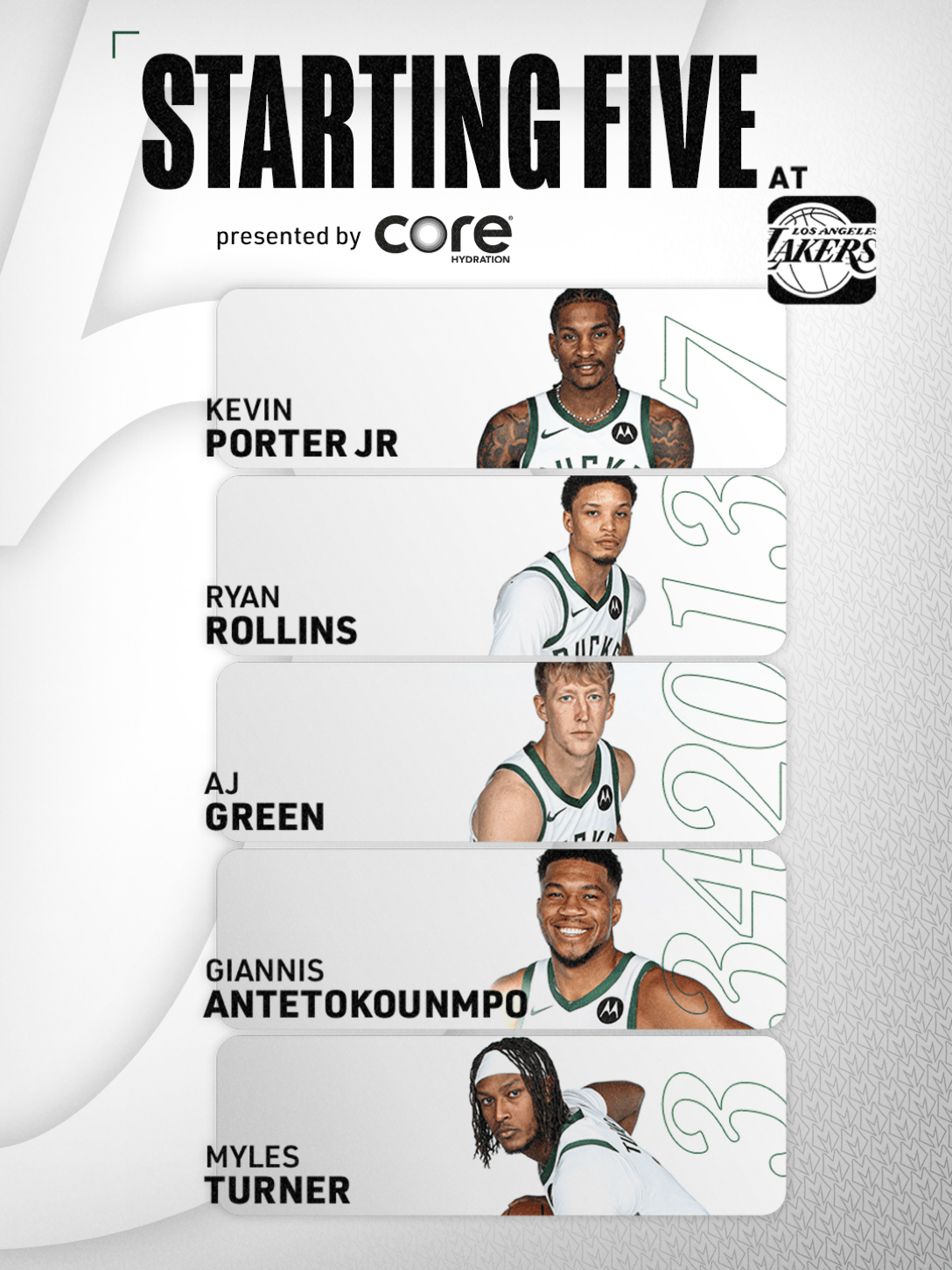 雄鹿首发:小波特、罗林斯、AJ-格林、扬尼斯、特纳