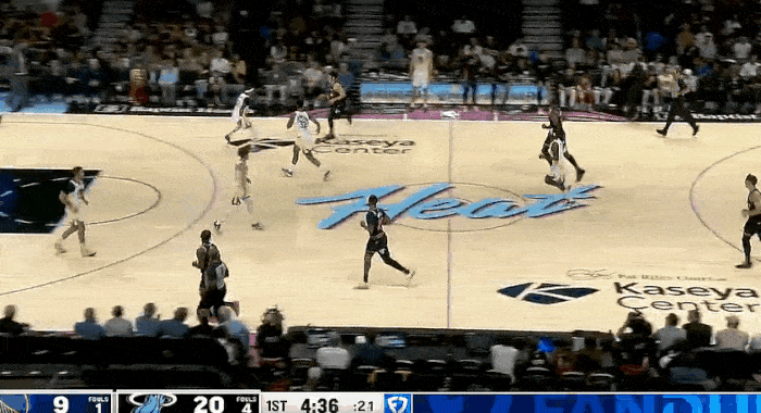 哈克斯反击突破抛投打成2+1,热火23-9领先勇士14分