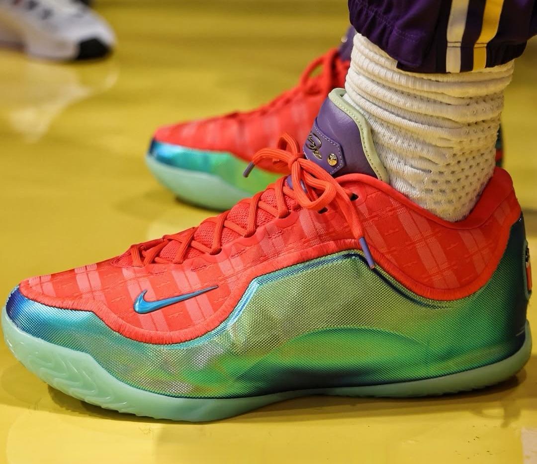 詹姆斯穿着圣诞王牌配色Lebron23,得到18分2篮板5助攻2抢断