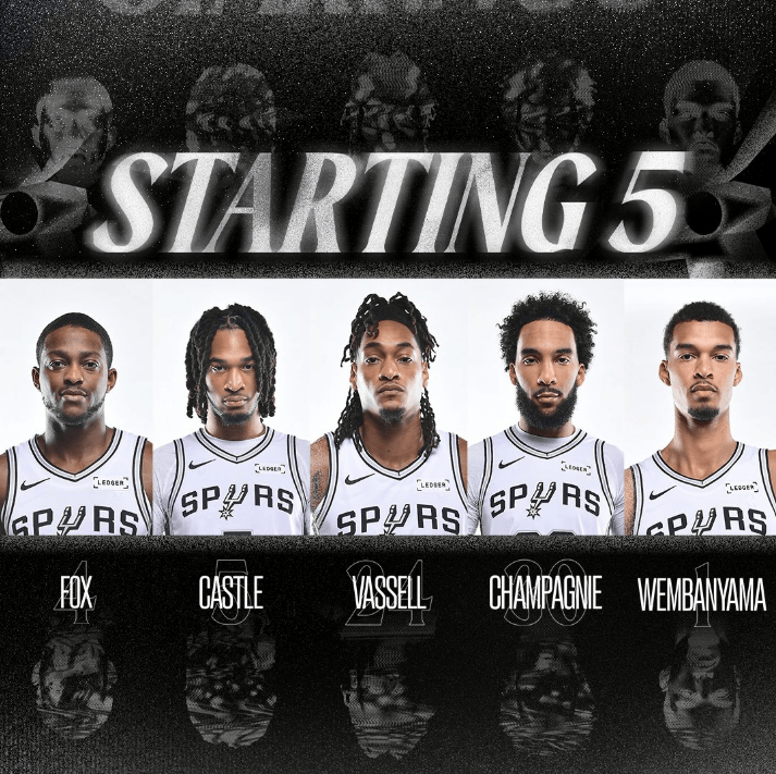 马刺首发:福克斯、卡斯尔、瓦塞尔、尚帕尼、文班亚马