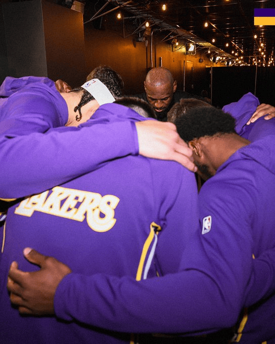 詹姆斯出战!湖人官方晒出赛前集结照:比赛准备开始了!