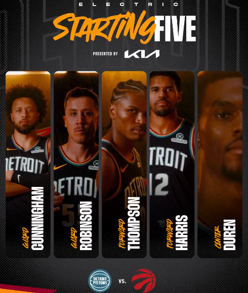 活塞首发:邓罗、哈里斯、奥萨尔、坎宁安、杜伦