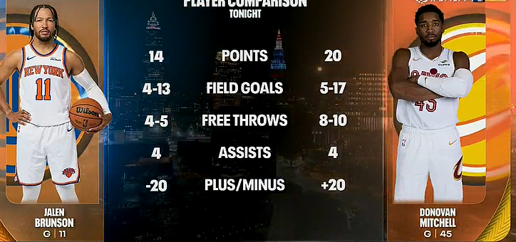虎扑 5回复米切尔本场目前17中5&正负值+20,布伦森13中4&正负值-20