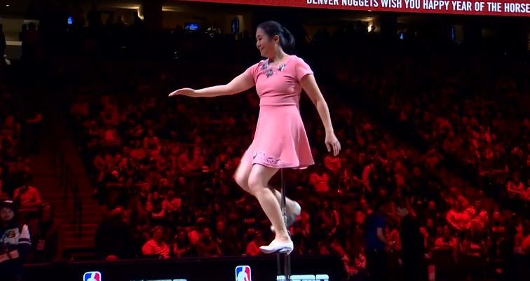 马年大吉!掘金主场春节活动,牛蓉表演中国传统杂技顶碗