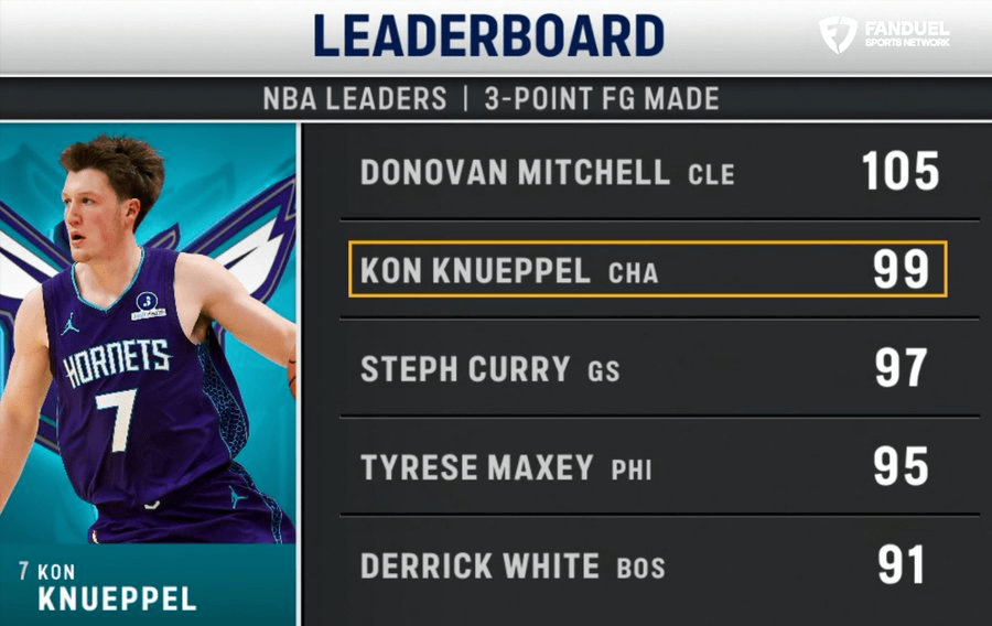 克尼普尔赛季至今已投中99记三分&排在第二位,仅次于米切尔