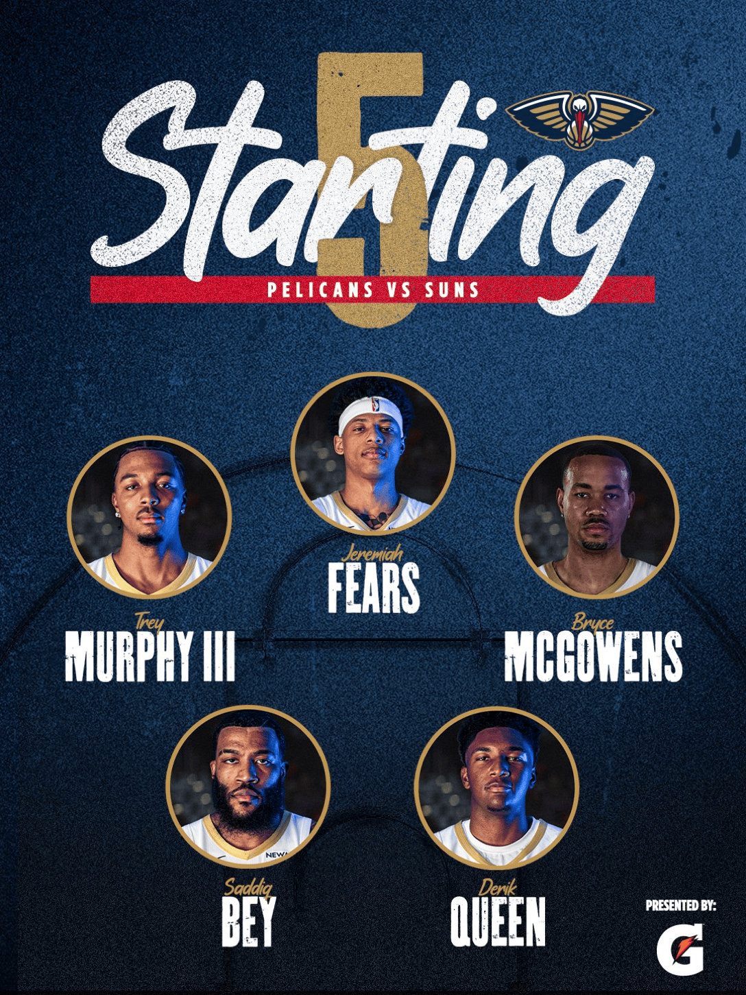 鹈鹕今日首发:费尔斯、墨菲、麦戈文斯、奎因、贝