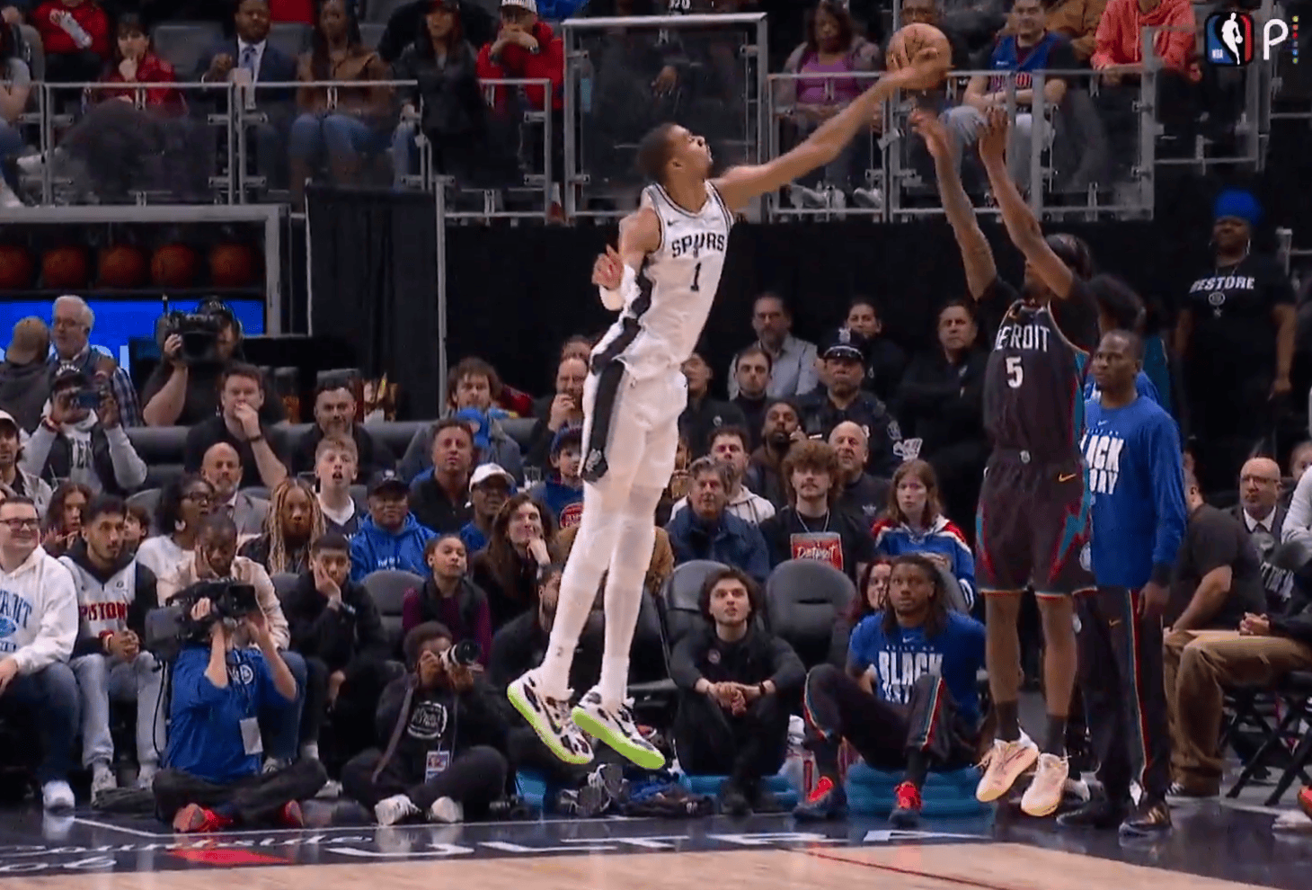 马刺末节开局7-0领先活塞15分,文班亚马秀肌肉激情庆祝
