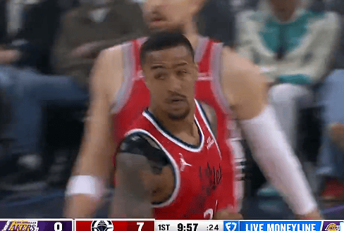 杰伦-约翰逊突破上篮失去平衡重重倒地,罚球后返回更衣室