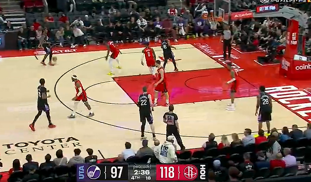 谢泼德三分也2中2,全队三分11中7&火箭已领先爵士16分