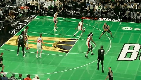 阿门强攻抛投打进拿到12分,火箭上半场59-50领先太阳