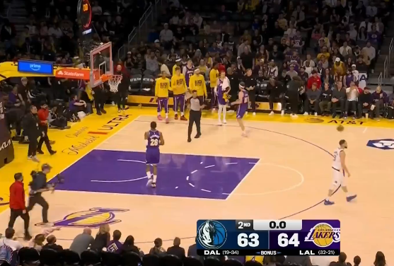 独行侠上半场结束前轰出一波12-0,半场63-64落后湖人1分