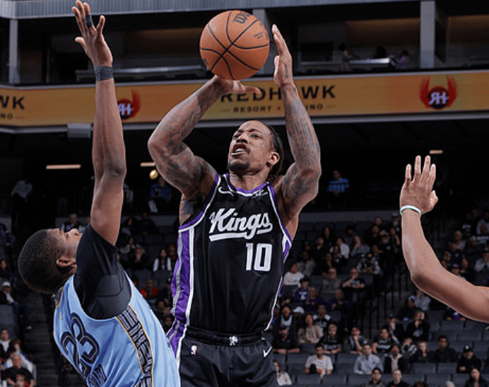 德罗赞全场10中6,三分3中1得到20分3篮板5助攻