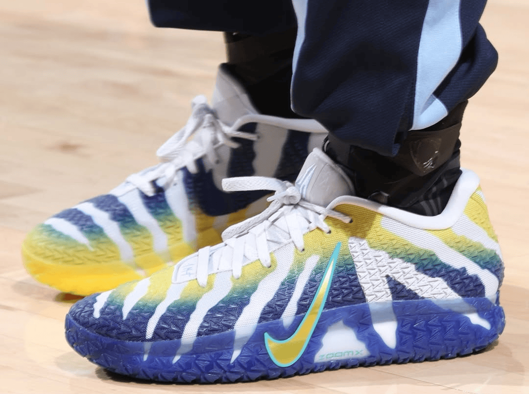 莫兰特穿着莫瑞州立大学配色JA3,得到23分12助攻3盖帽