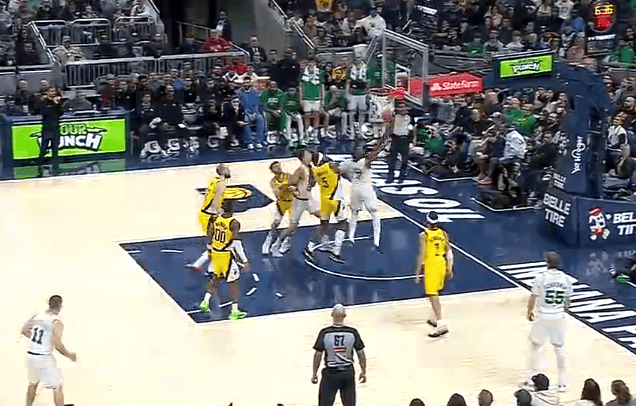 虎扑 8回复杰伦-布朗上篮打进,绿军打出一波25-9反超并领先5分
