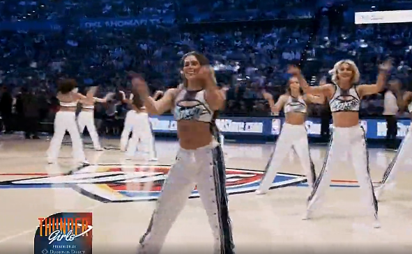 雷霆主场音乐意外中断啦啦队坚持完成舞蹈,赢得全场掌声