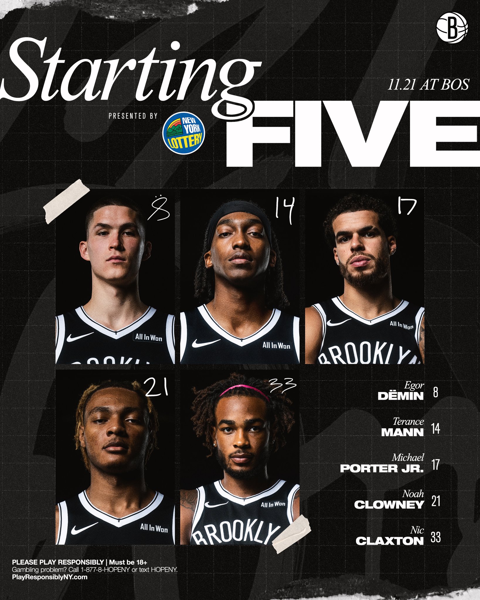 篮网首发:波特、克拉克斯顿、曼、杰明、克洛尼