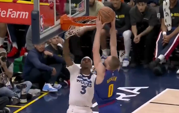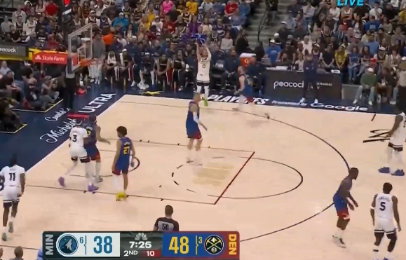 戈登反击三分投进,掘金46秒打出一波7-0森林狼叫停