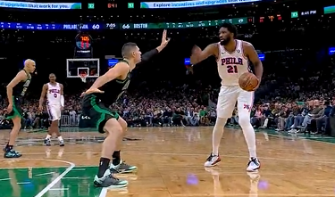 恩比德包办76人开局所有得分,随后高扬双臂调动主场气氛