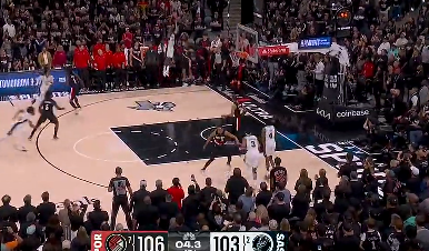 布劳恩快攻暴扣造成麦丹防守犯规,森林狼申请挑战失败