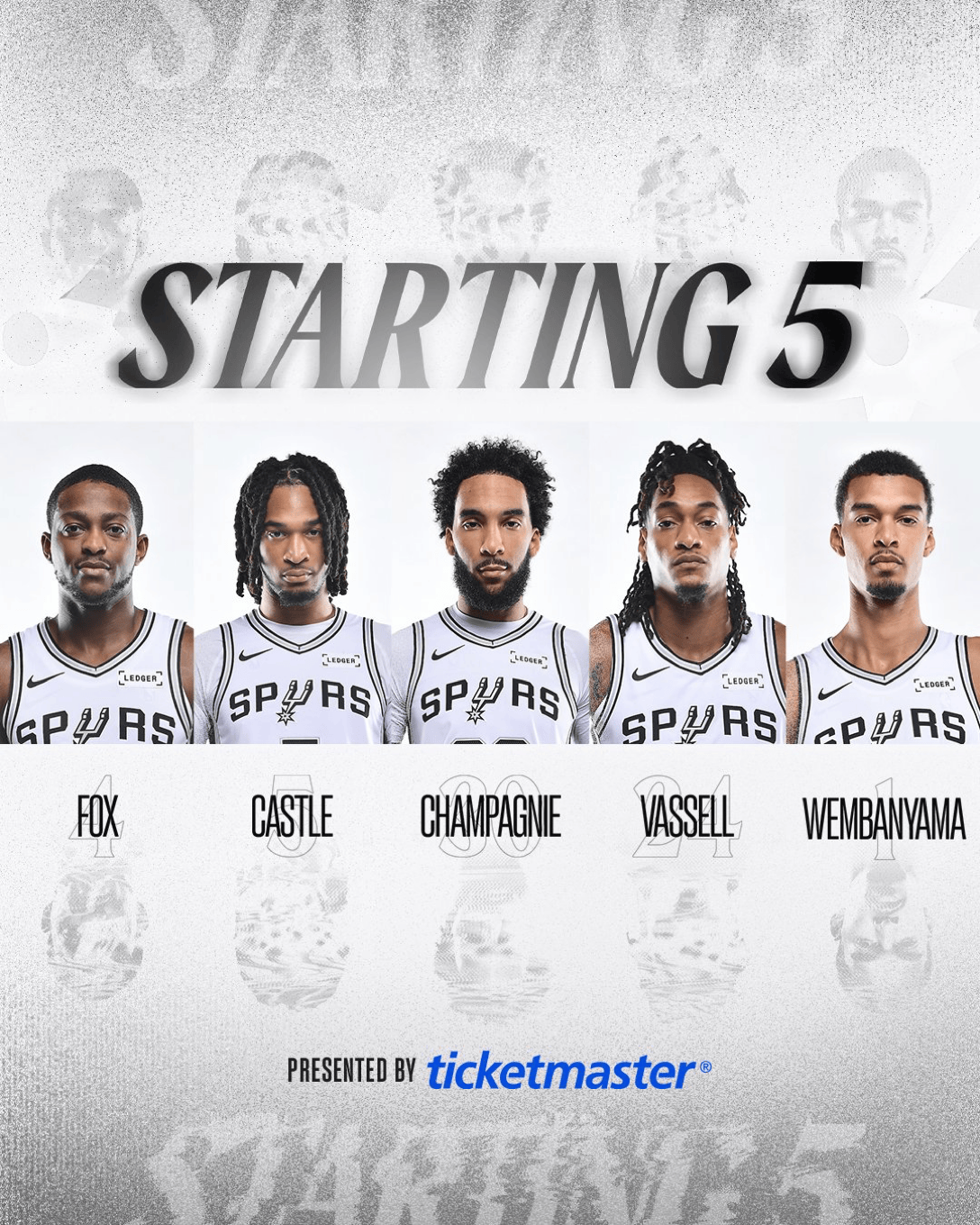 马刺首发:福克斯、卡斯尔、尚帕尼、瓦塞尔、文班亚马