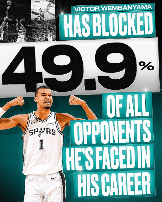 文班DPOY赛季盖帽数、场均盖帽、限制对手命中数均联盟第一