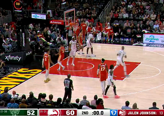 虎扑沃克抢断反击上篮打进,老鹰领先雄鹿到20分分差