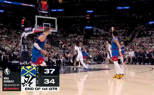 约基奇打满12分钟拿到12分7篮板,掘金首节37-34领先马刺