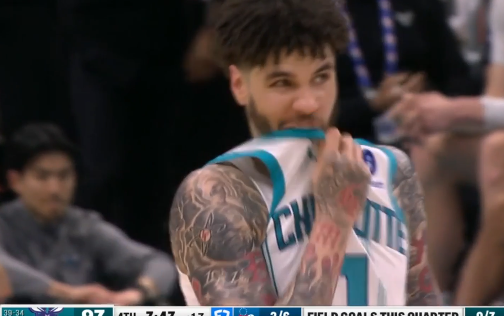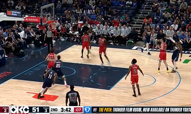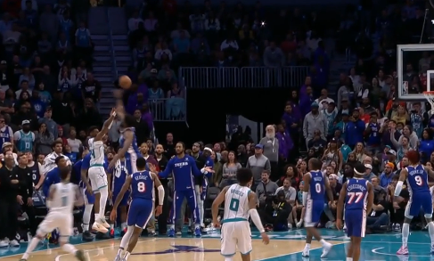 东契奇被威尔逊顶到腹部倒地,随后撤步三分投进砍下41分