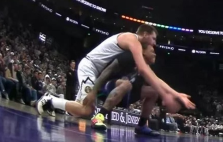 约基奇与菲利篮下抱摔双双倒地,裁判吹罚后者犯规