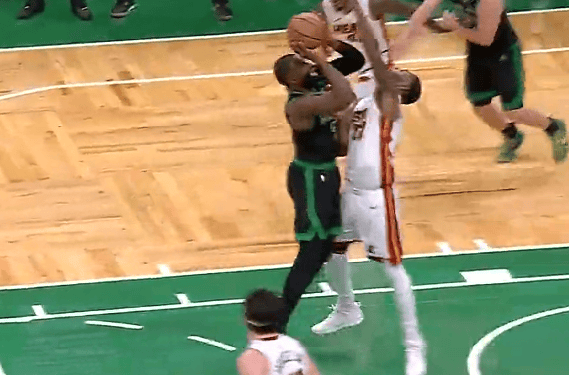 虎扑布朗关键球抬肘打到威金斯被吹进攻犯规,绿军挑战失败